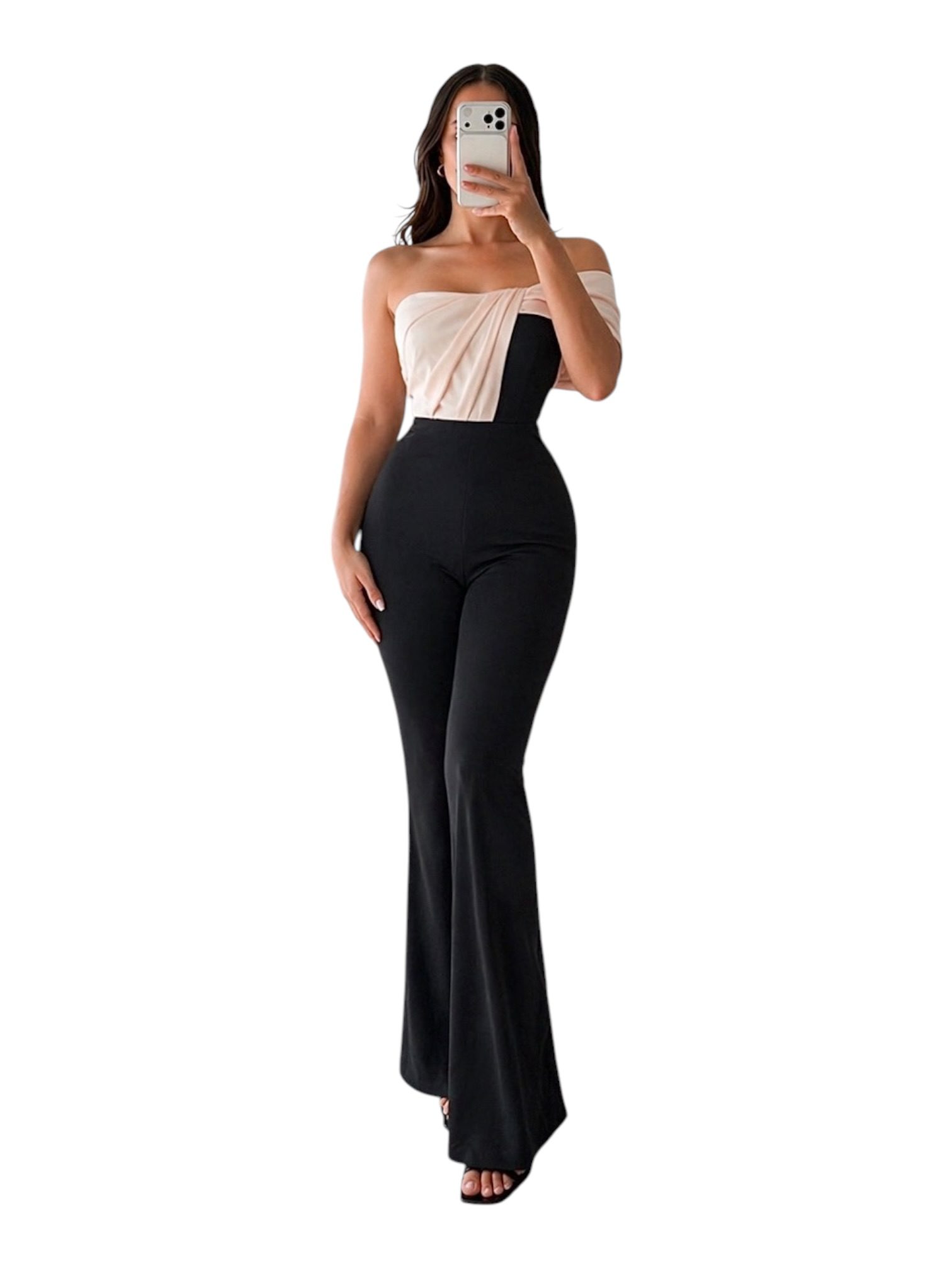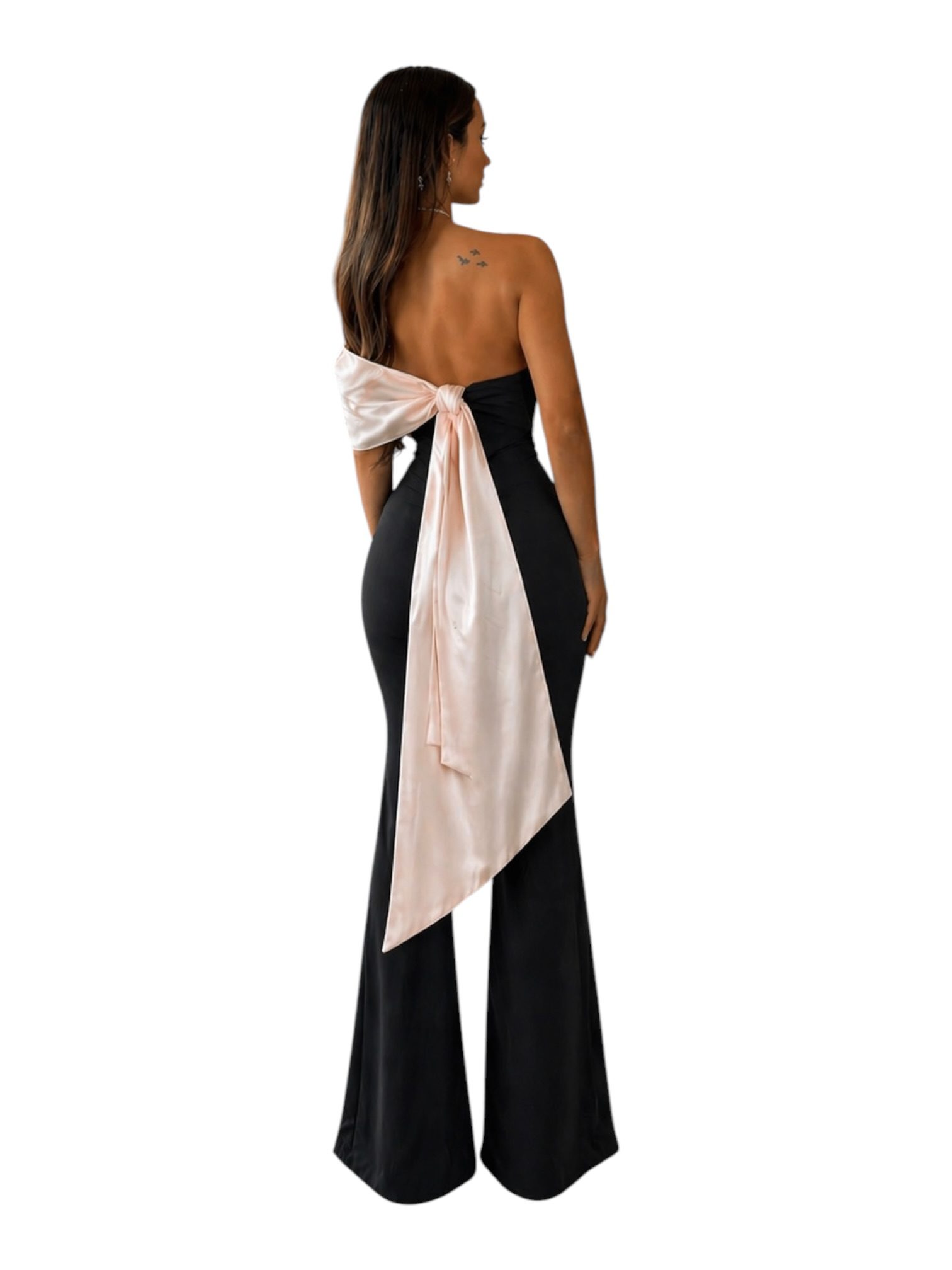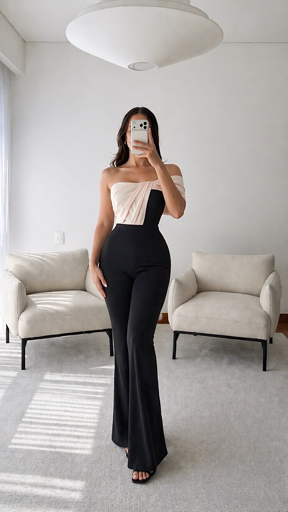 Palazzo Elegante Negro Con Top Asimétrico Y Pantalón Acampanado
