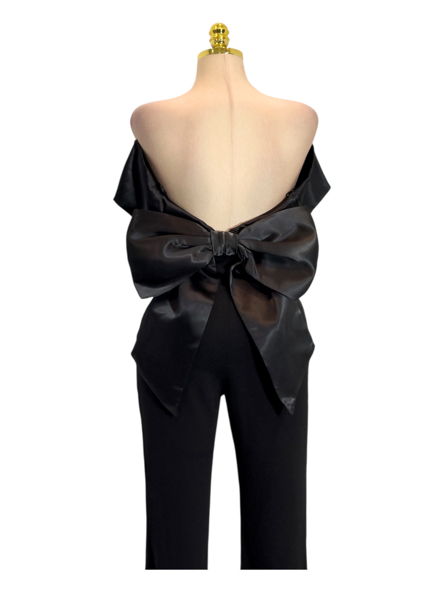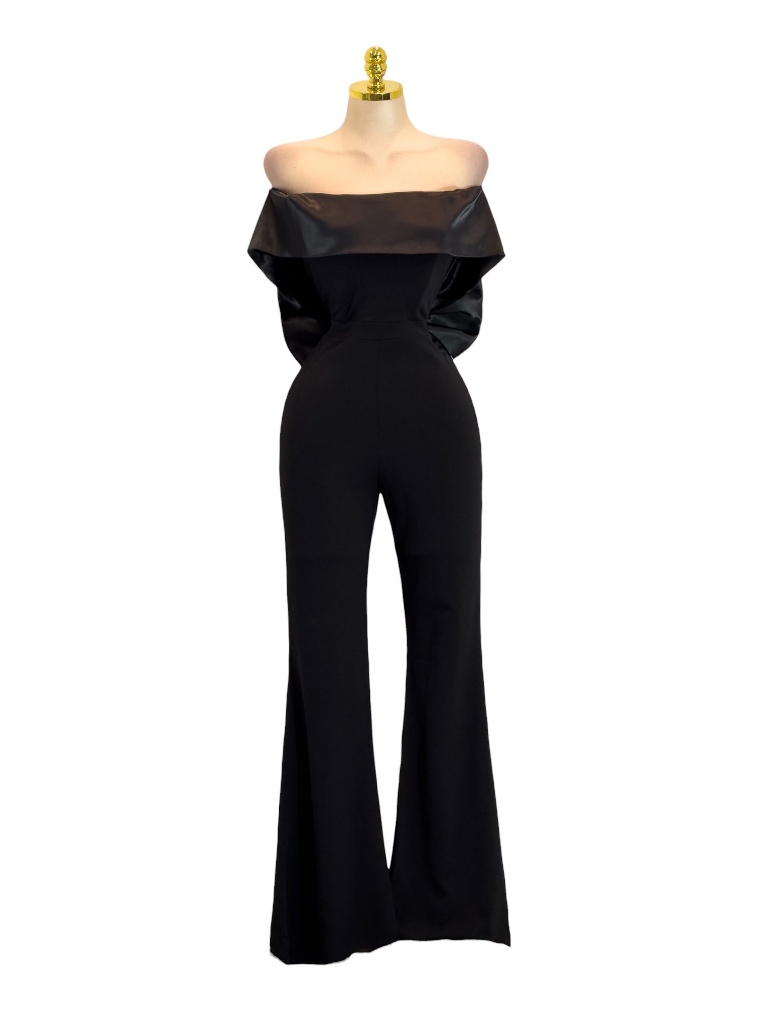 Palazzo Largo Negro Con Detalle Satinado En Escote