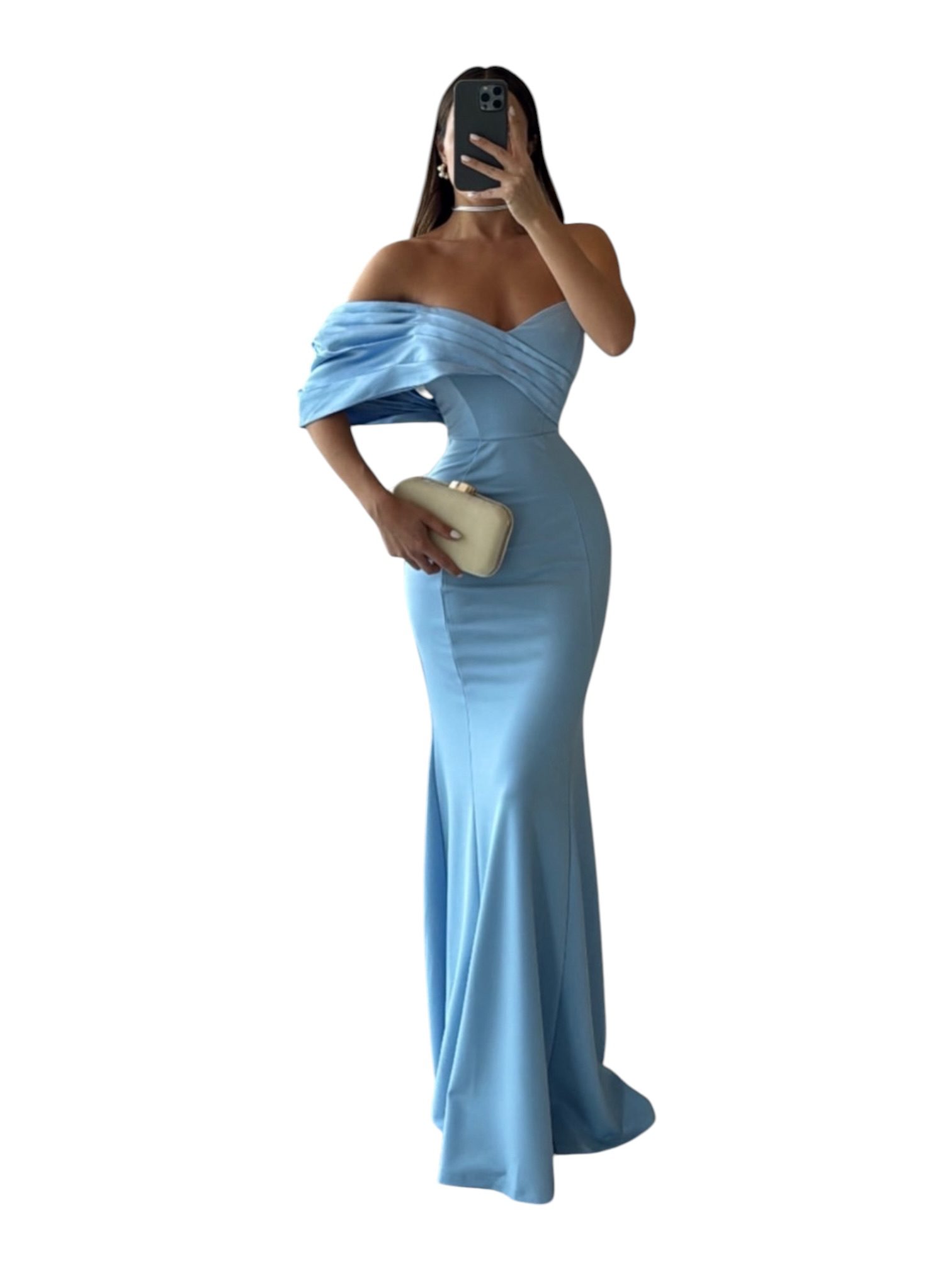Vestido Azul Cielo Con Drapeado Cruzado