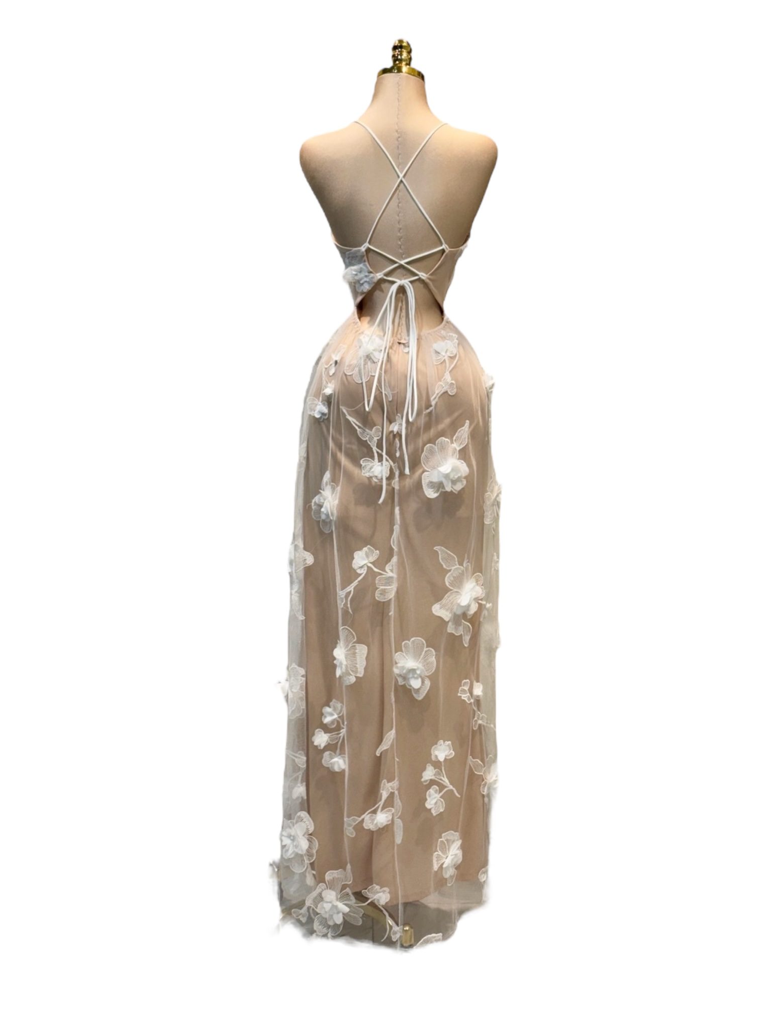 Vestido Largo Transparente con Bordado Floral