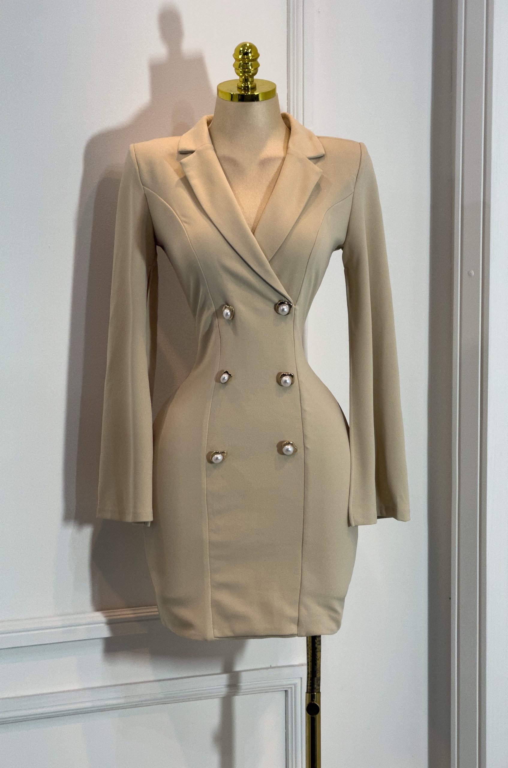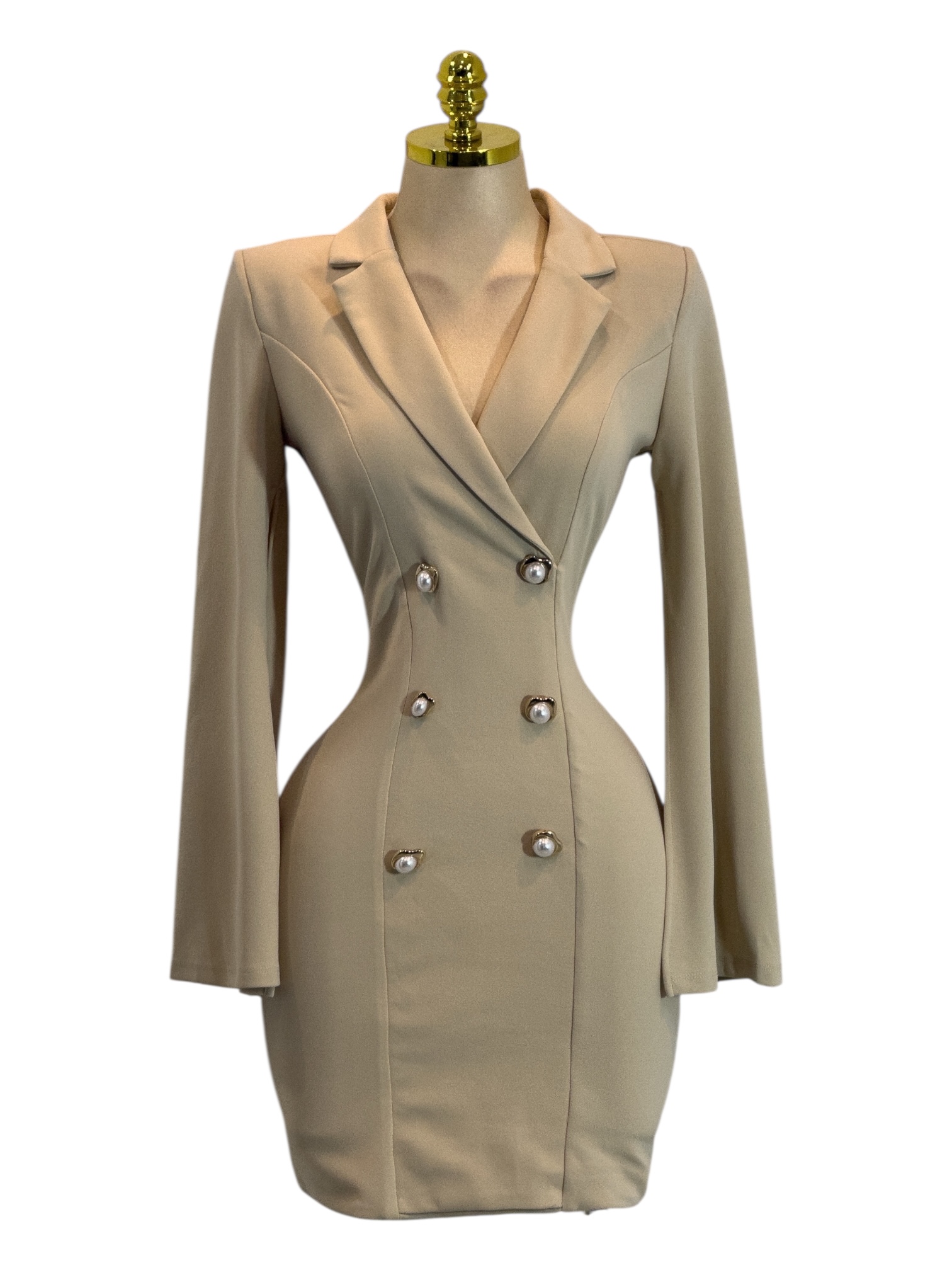 Vestido Beige Tipo Blazer Con Doble Botonadura