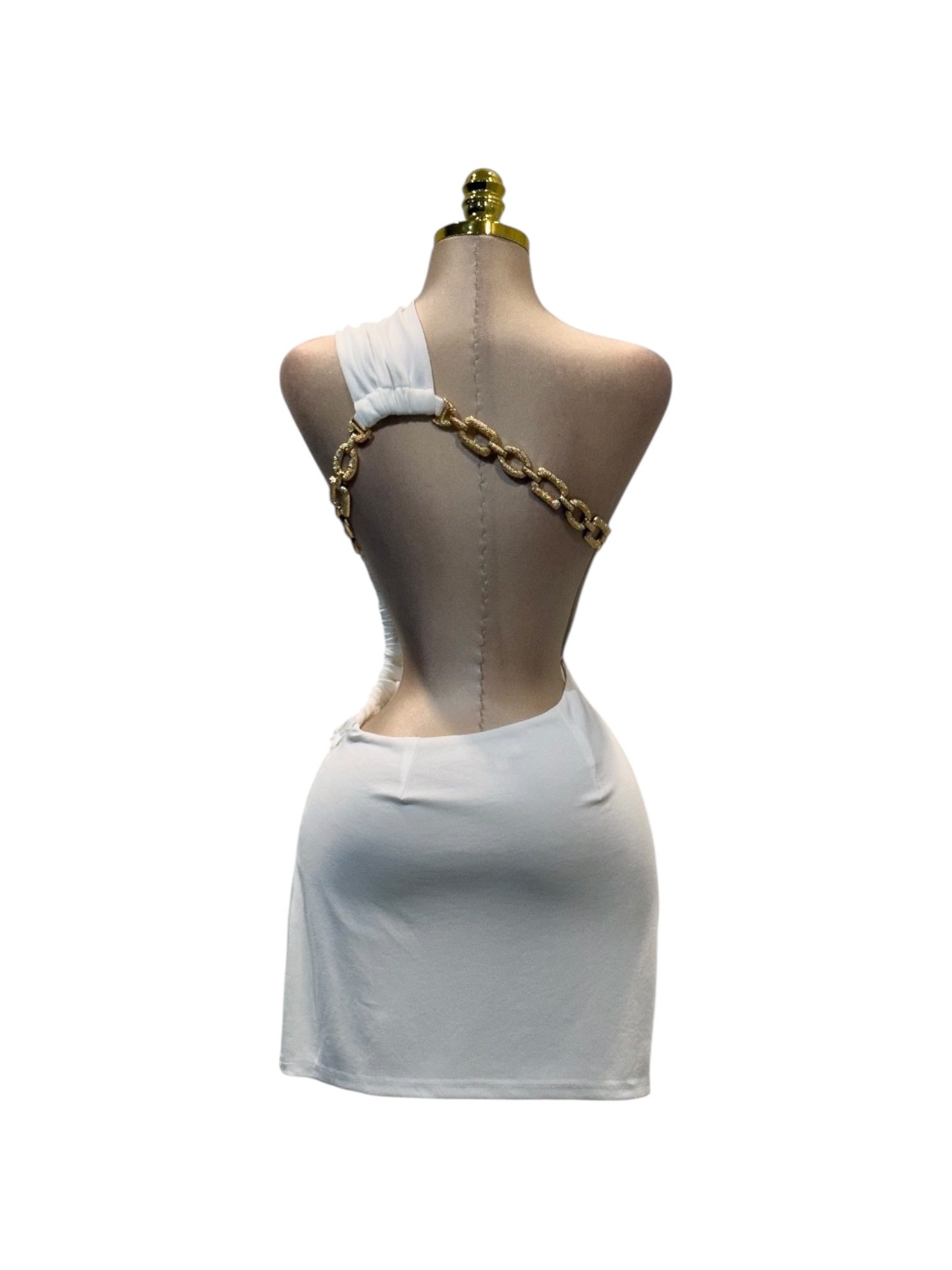 VESTIDO: CORTO BLANCO ASIMÉTRICO CON DISEÑO DRAPEADO