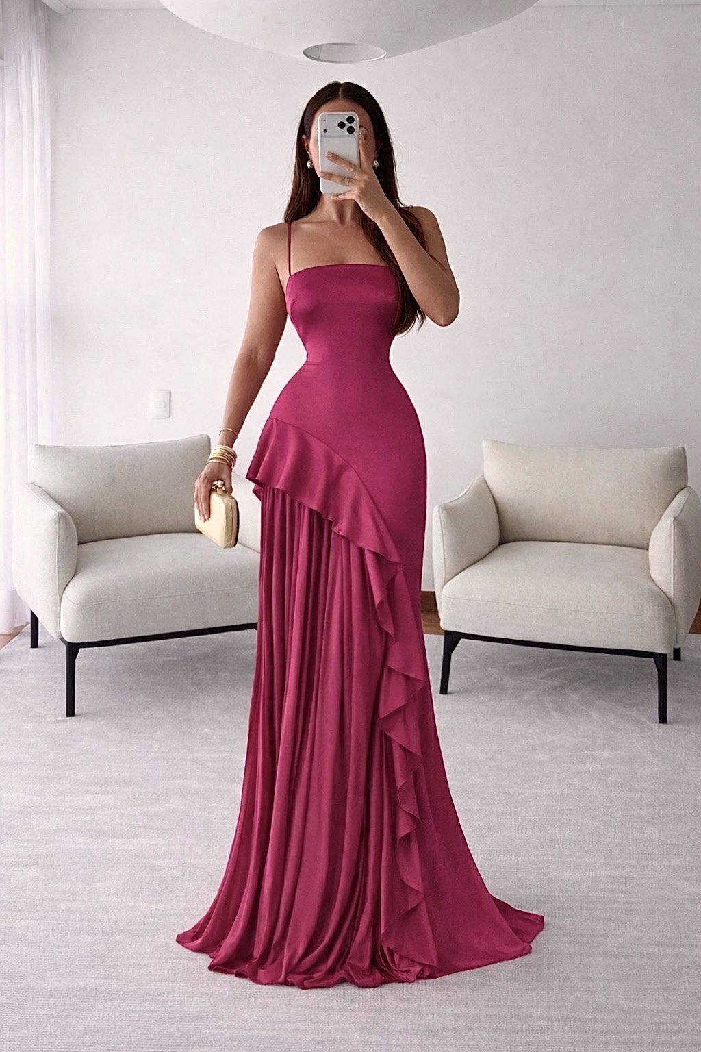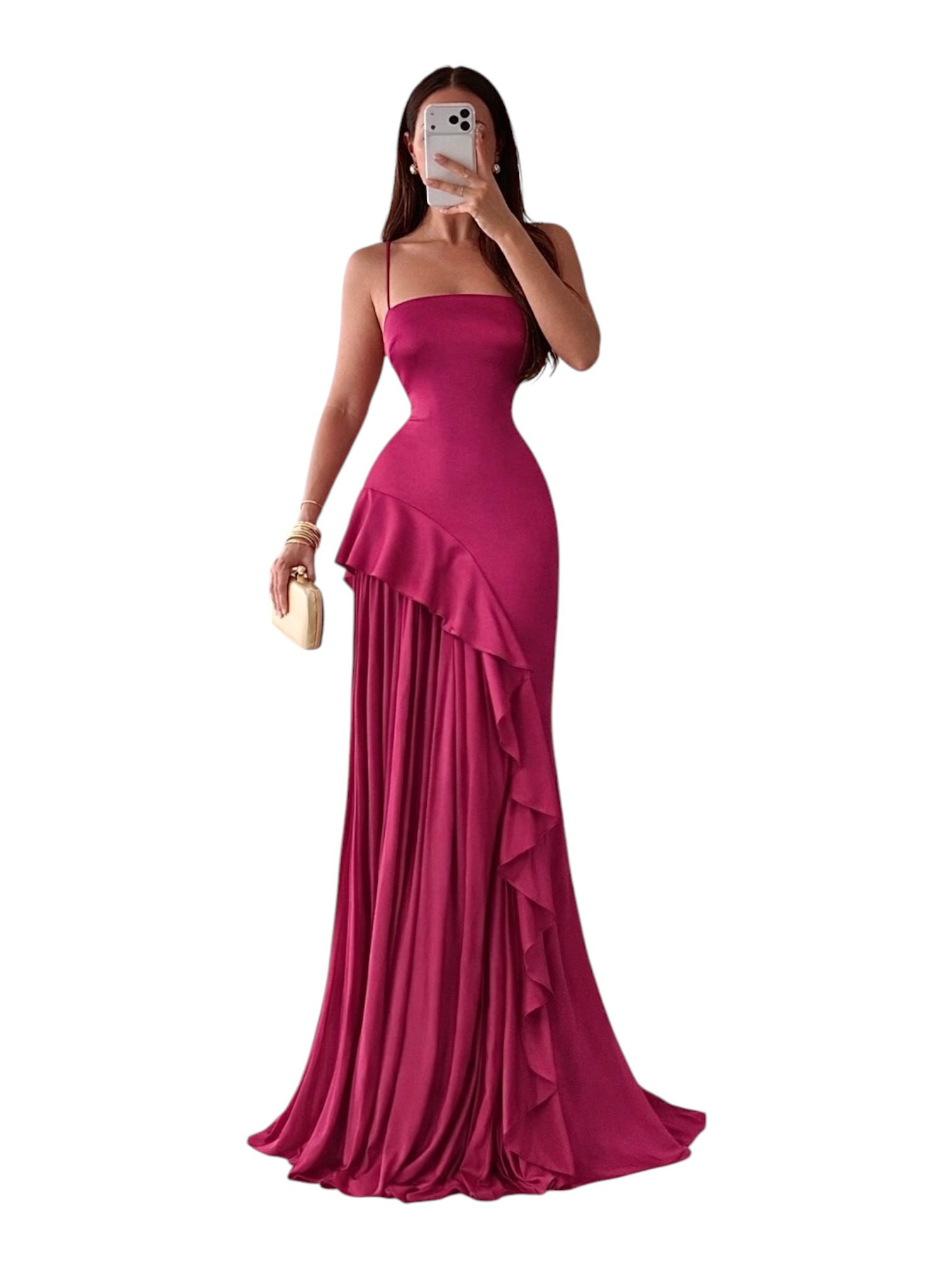 quantity Vestido Color Ciruela Con Tirantes Delgados Y Falda Con Volantes Asimétricos