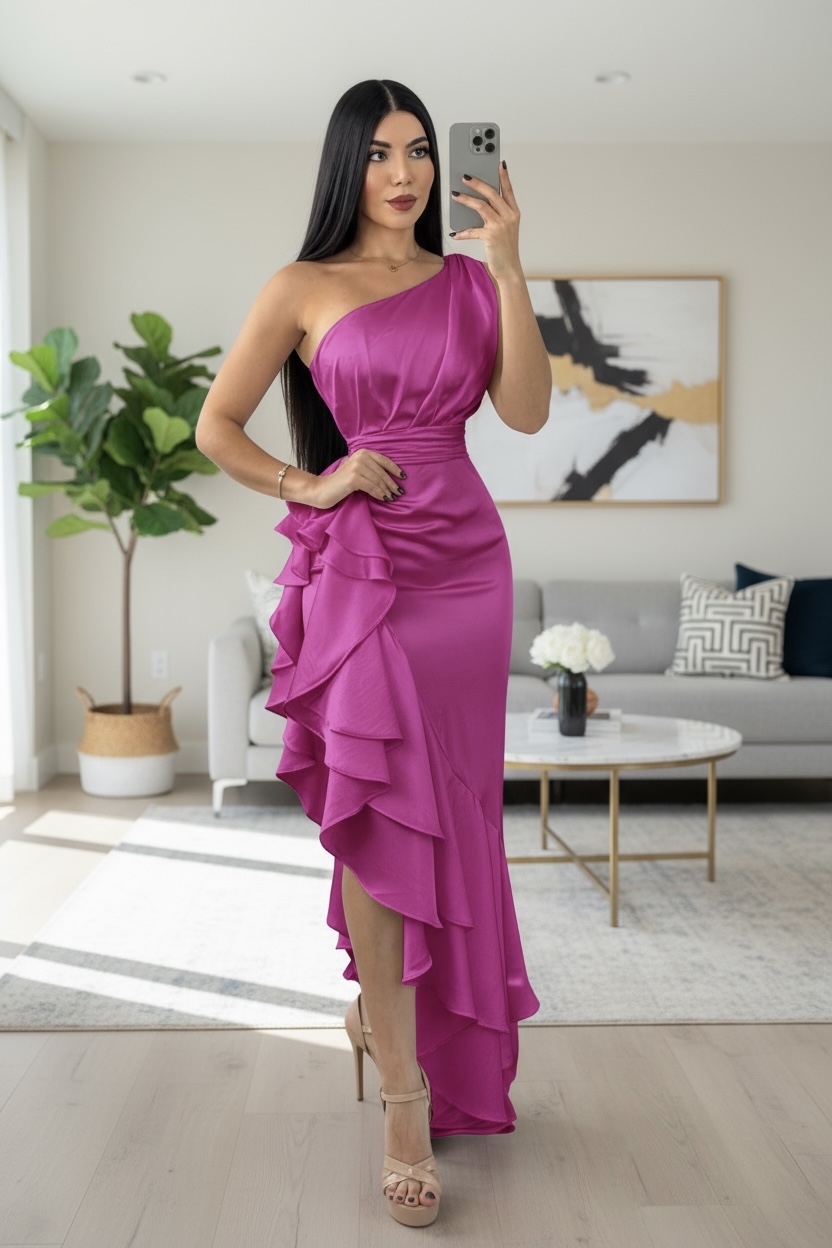 quantity Vestido Color Fucsia De Satin