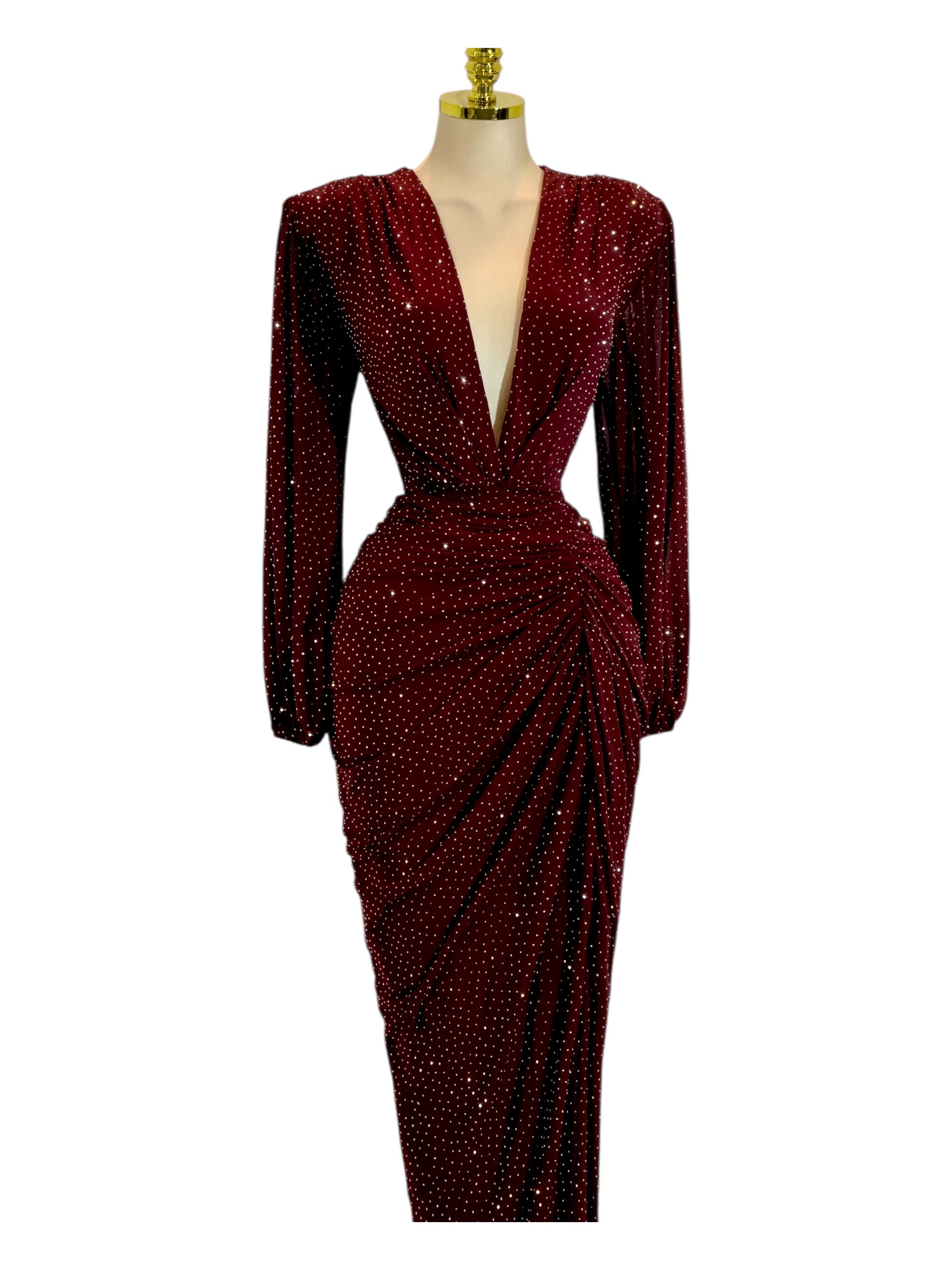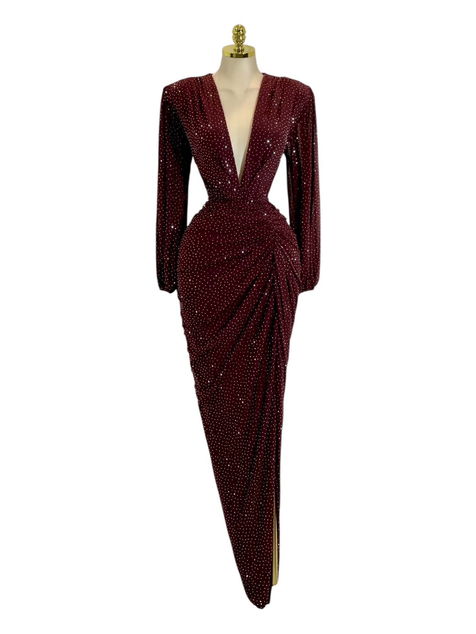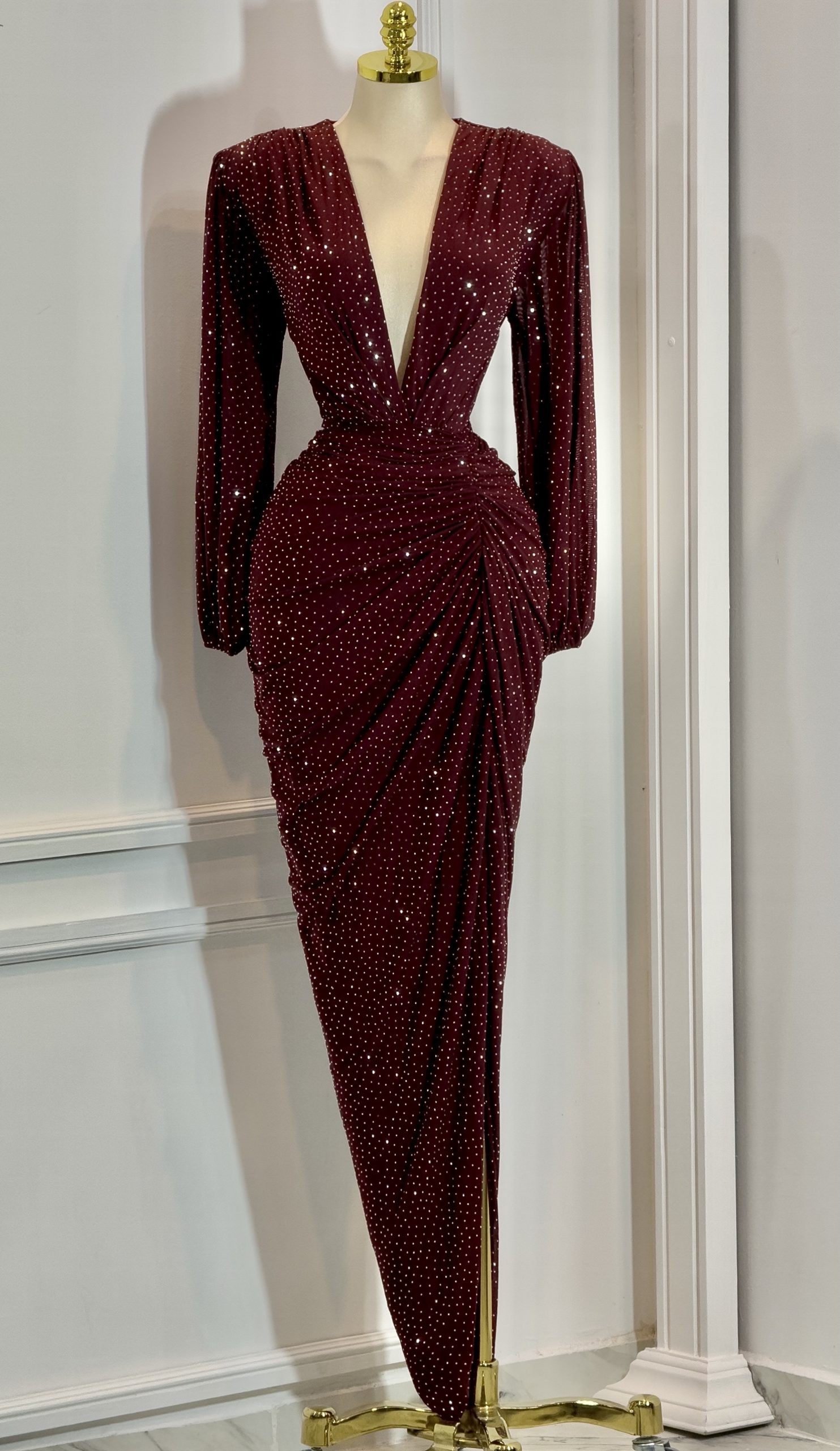 Vestido Color Vino Con Piedras
