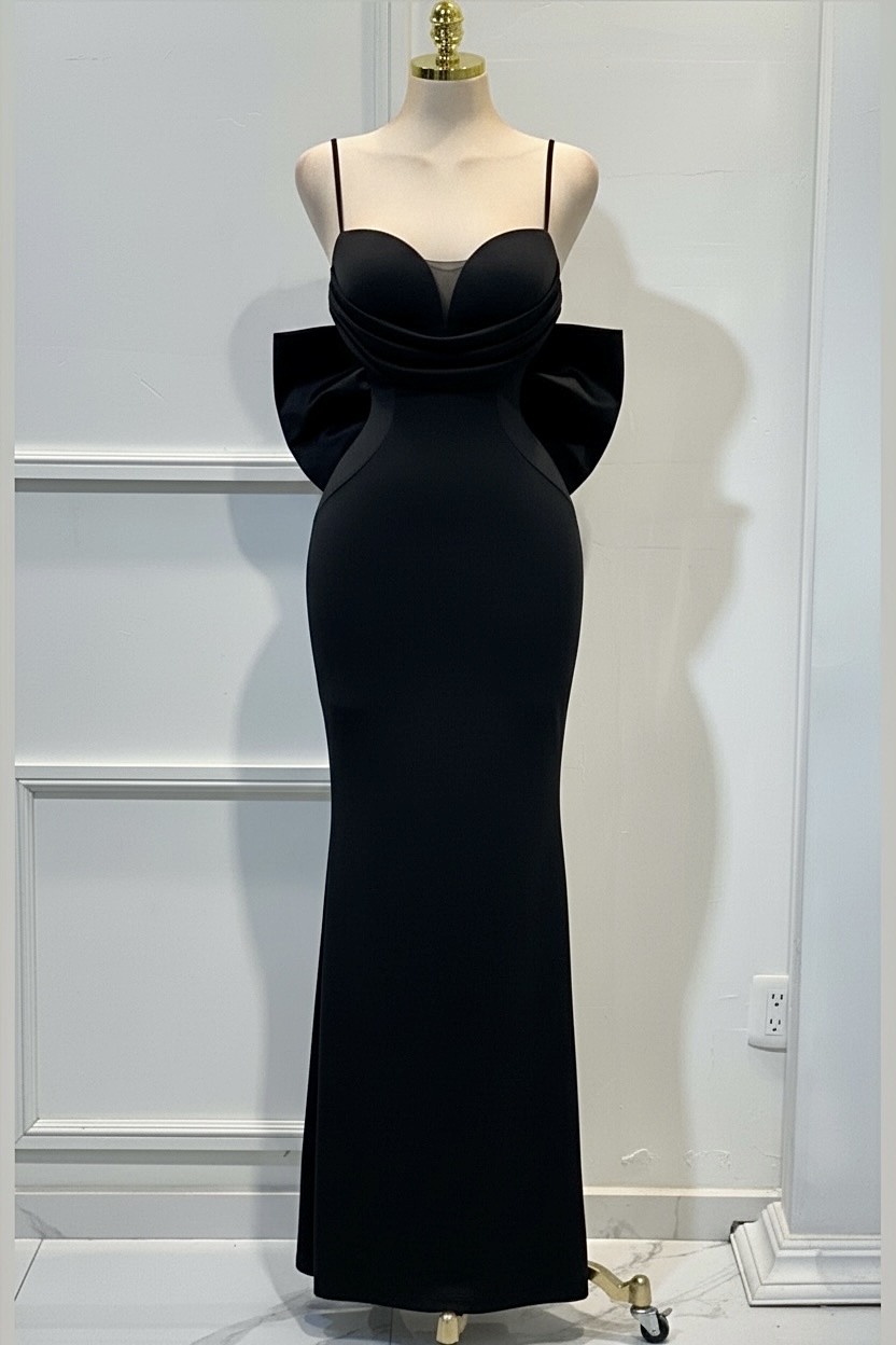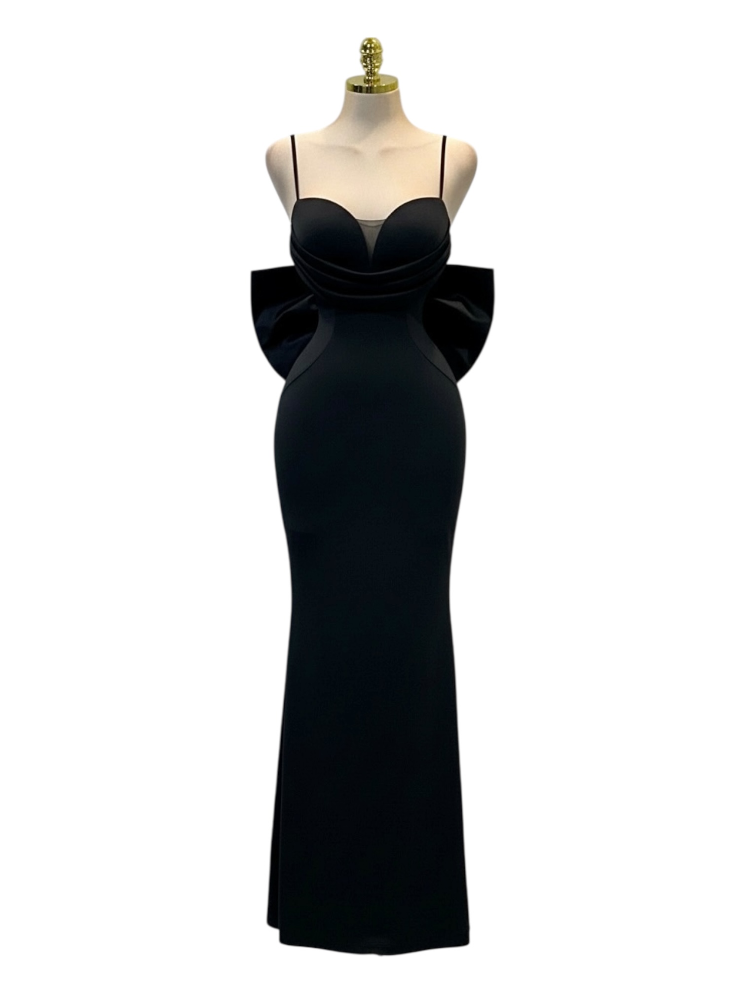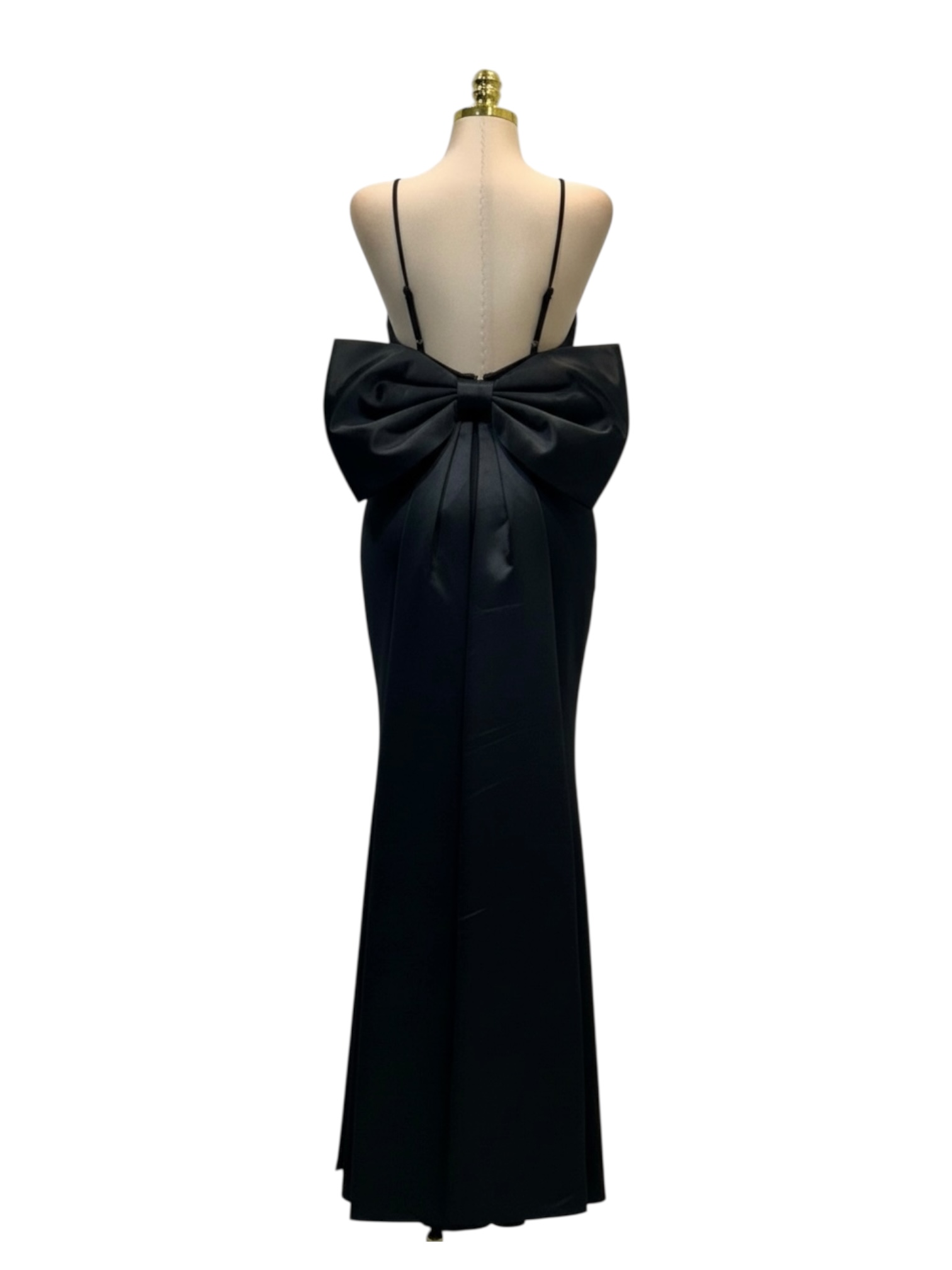 Vestido Largo Negro Con Moño Estructural - Image 3