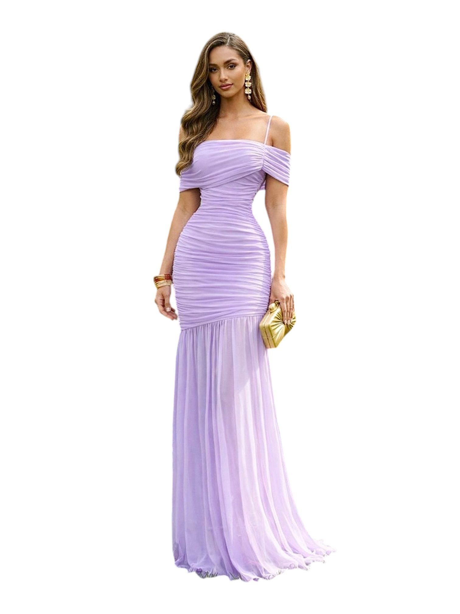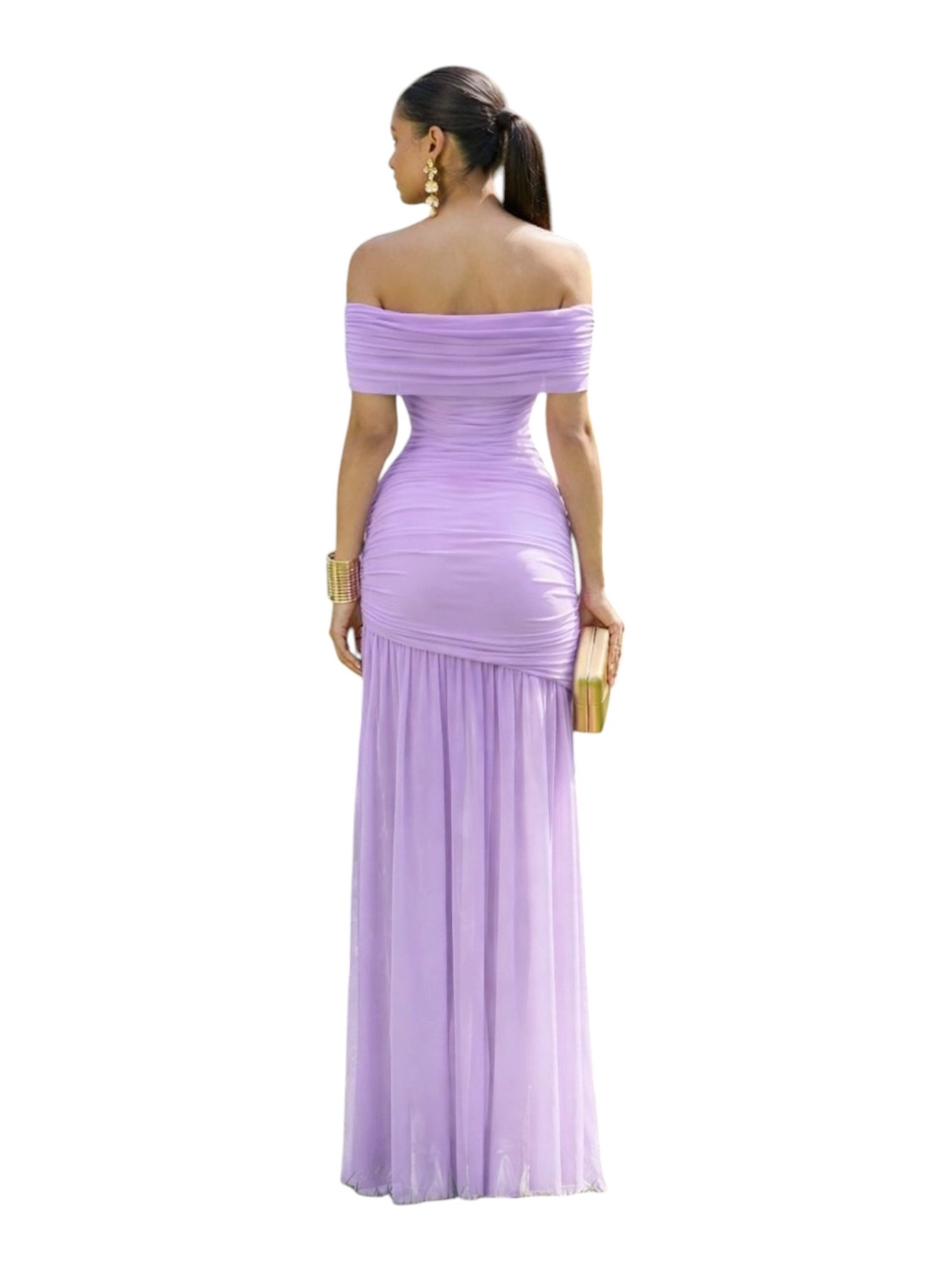 Vestido Lila Con Fruncido Y Caída En Tul Suave