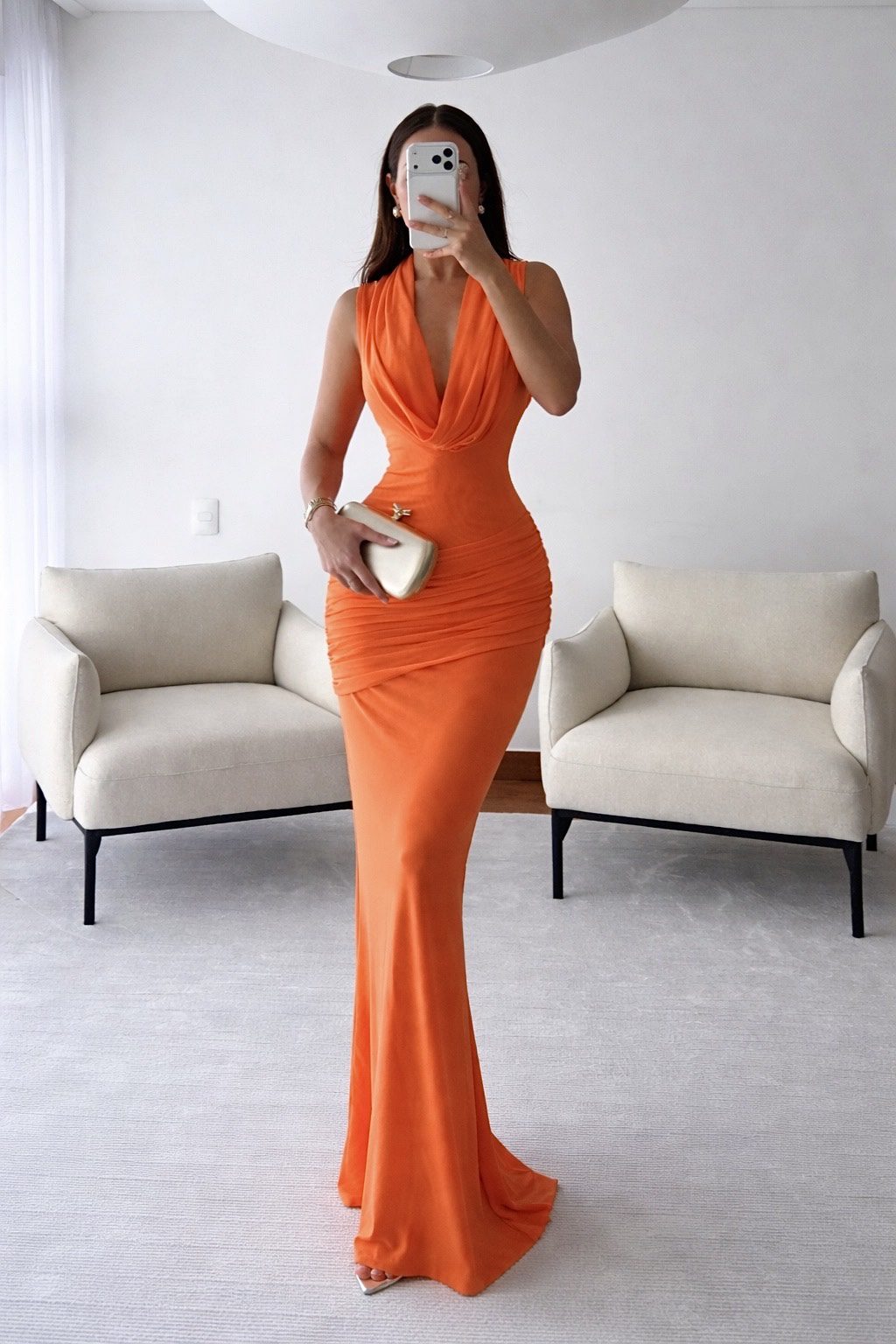 quantity Vestido Naranja Intenso Con Escote Halter Drapeado Y Silueta Ajustada