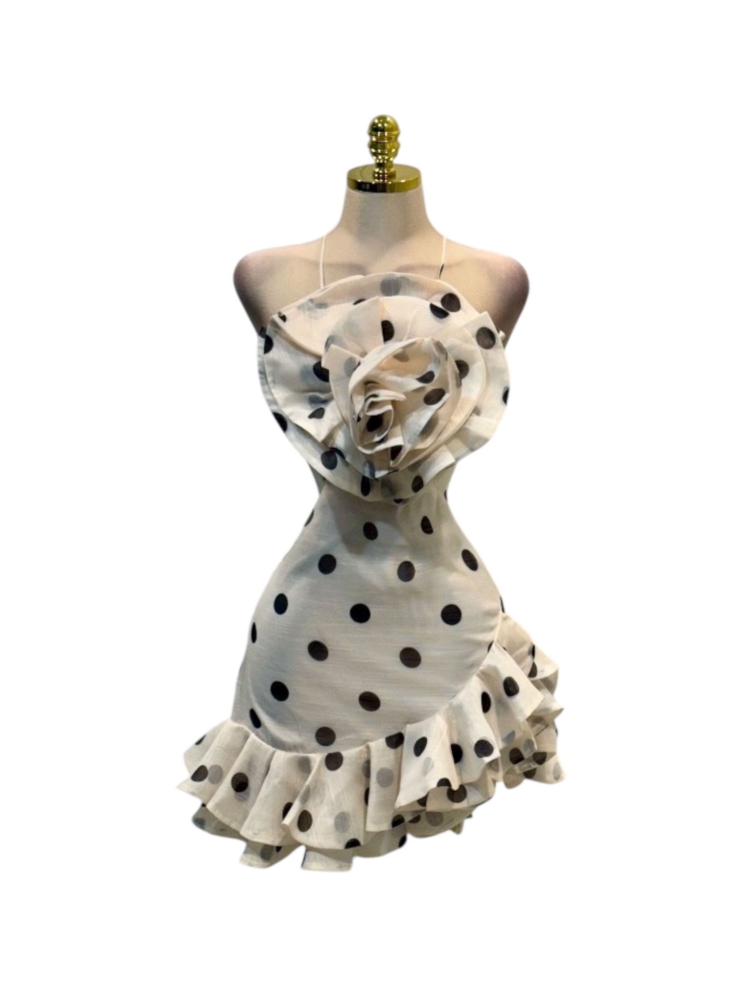 Vestido Negro Corto Con Flores Y Moño En La Espalda
